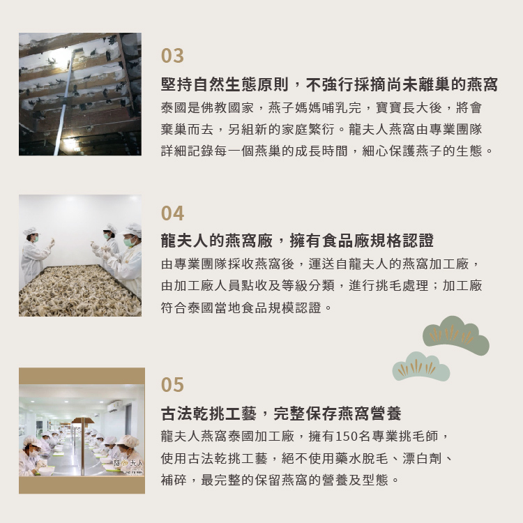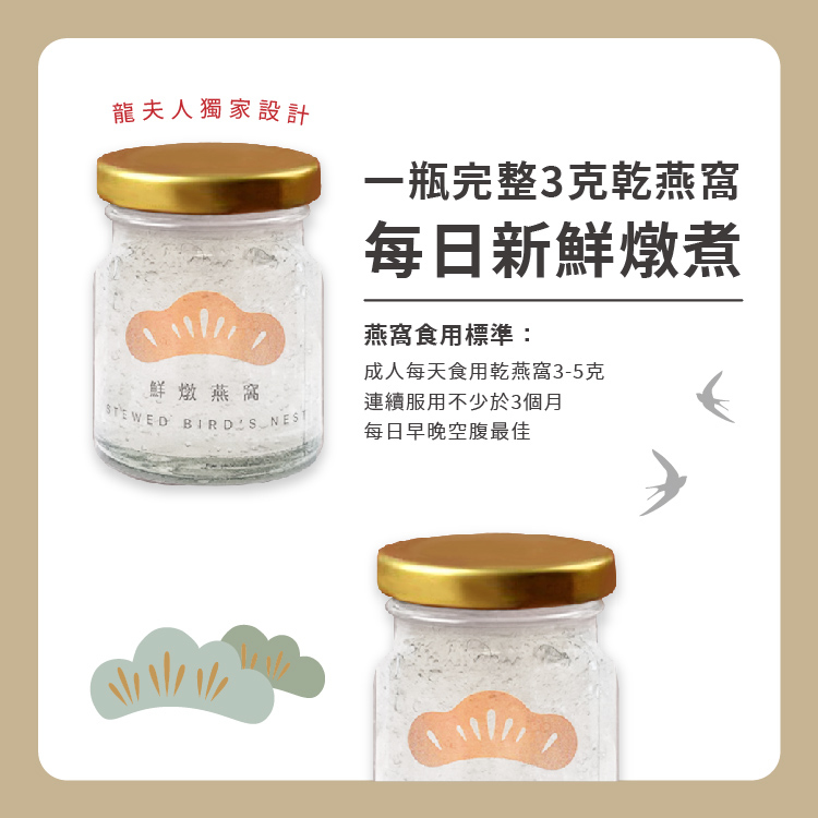 1 .本產品使用天然燕盞,若偶有細微絨羽。